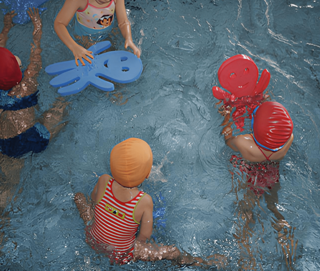 Dos 3 aos 5 anos: adaptação ao meio aquático (AMA), manobras de sobrevivência em forma de jogos e brincadeira.