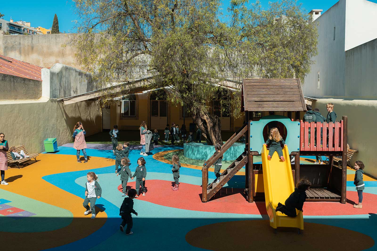 At Colégio Luso-Suíço, the space has been designed to support children’s daily life – with bright classrooms, areas tailored to different age groups, and an outdoor playground where there is time to play, move and breathe. Throughout the year, the facilities support the pedagogical work, providing safe and appropriate environments for learning, creating and spending time together.